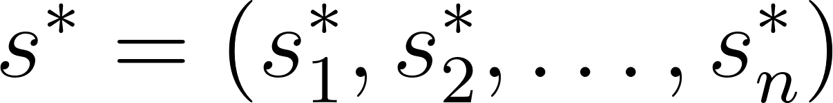 Let a game be defined by players, where each player has a set of possible strategies and a payoff function .