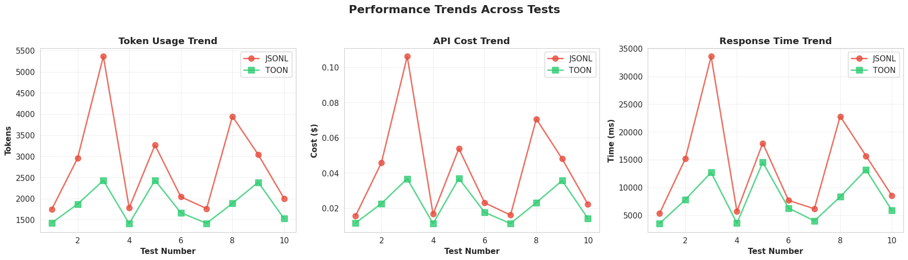 I hypothesized that switching from JSONL to TOON would dramatically reduce costs, even after accounting for the additional context needed to explain the TOON format to the LLM.