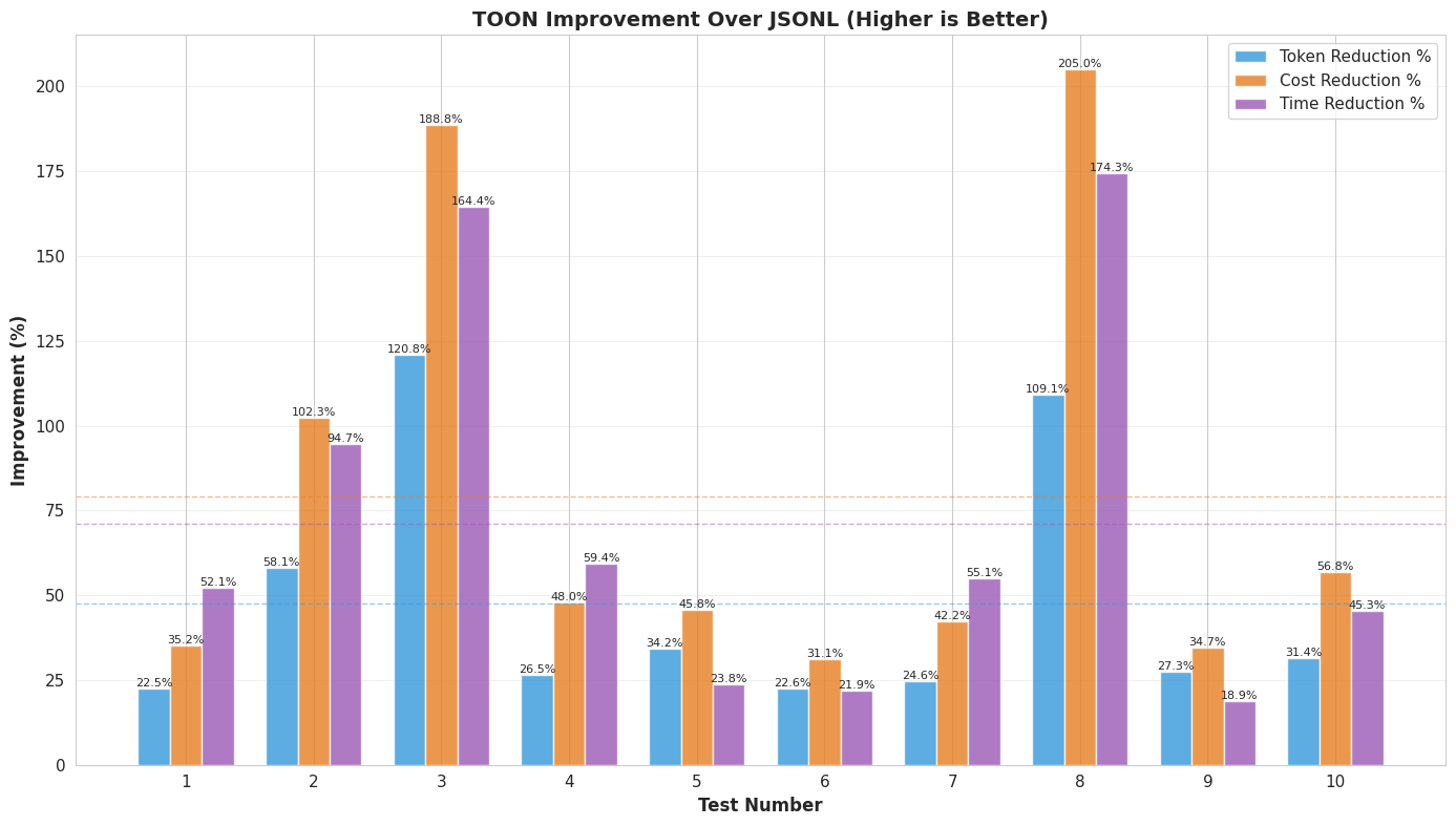 By exploring TOON as an alternative to JSONL, this optimization achieved: